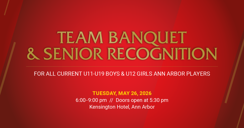Save the date to join us on Tuesday, May 26, from 6:00-9:00 pm at Kensington Hotel in Ann Arbor for our first-ever Team Banquet & Senior Recognition. This event celebrates our athletes and honors our seniors.