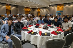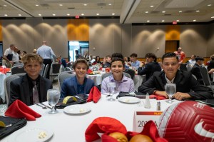 Following a sit-down dinner, attendees were inspired by guest speaker Justin Meram. Justin shared his journey from growing up in Michigan, through high school, Division 1 college soccer, and into his professional career. Despite numerous roadblocks, he worked tirelessly to achieve his goals. Justin has an impressive playing history, having played soccer in Arizona, at the University of Michigan, and professionally for Columbus Crew, Orlando City FC, Atlanta United FC, Real Salt Lake, Charlotte FC, and currently Michigan Stars. He also played for the Iraq National Team for more than eight years. His message of hard work, perseverance, and mental toughness resonated with all the boys present.