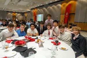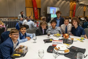 Following a sit-down dinner, attendees were treated to a speech by senior Josh Copeland, a prominent member of the 2005/04 E64 Boys team and a dedicated member of the club since 2019. Josh shared his appreciation for the staff members and teammates who have had an impact on him as well as valuable insights from his playing career to date, leaving a lasting impact on the players and parents present.