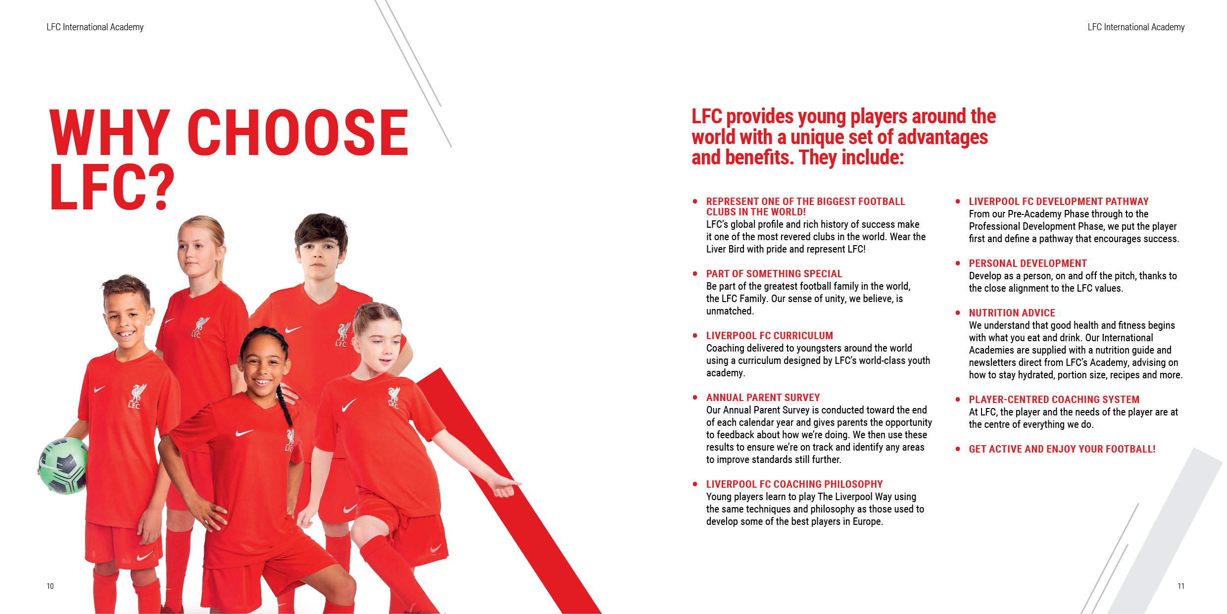 We invite you to take a few minutes to read through our Parent Guide. Learn about Liverpool Football Club, LFC International Academy, our values, and the benefits of being part of this great soccer club. Download a digital version or view the slide show below.