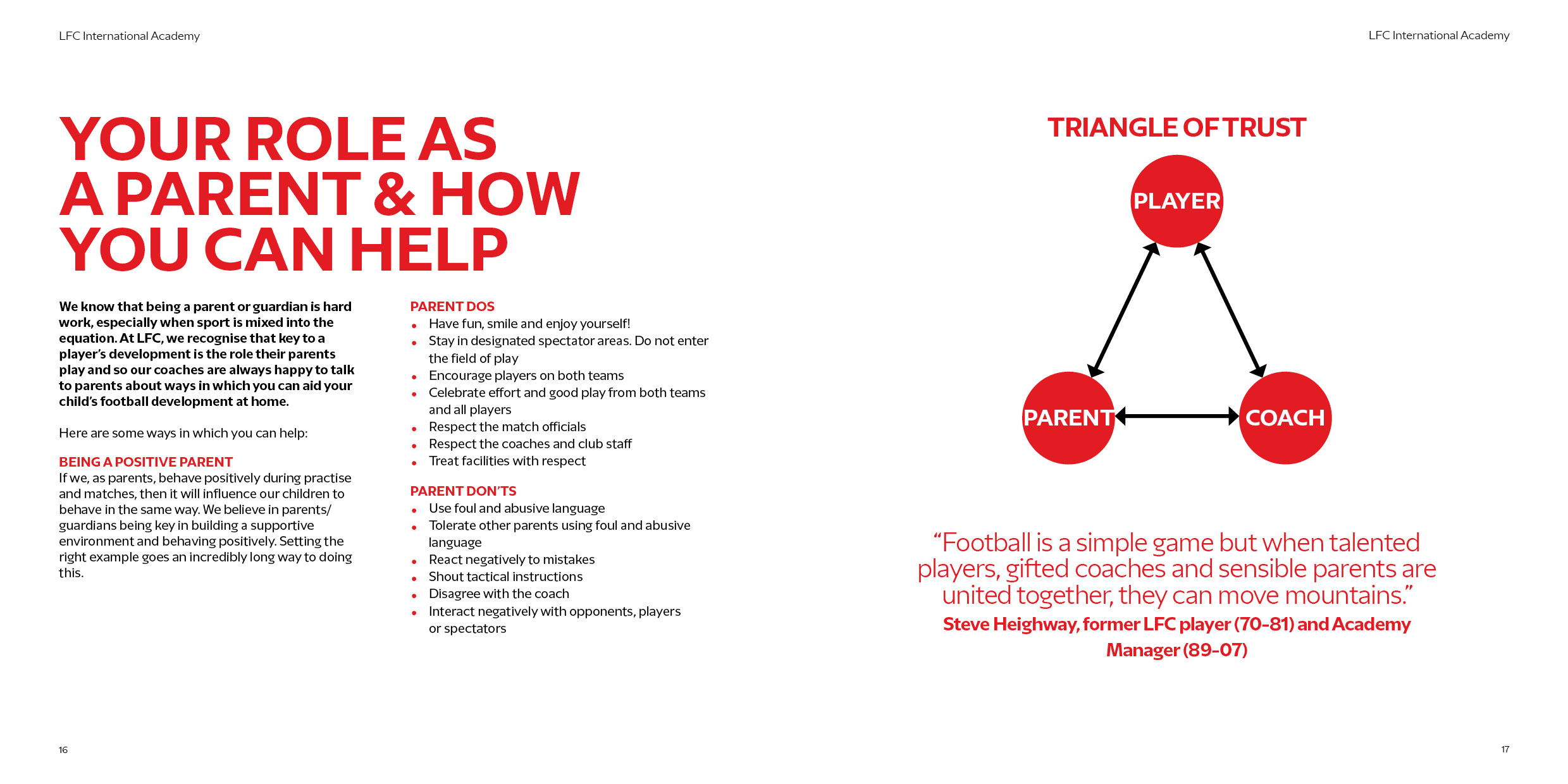 We invite you to take a few minutes to read through our Parent Guide. Learn about Liverpool Football Club, LFC International Academy, our values, and the benefits of being part of this great soccer club. Download a digital version or view the slide show below.